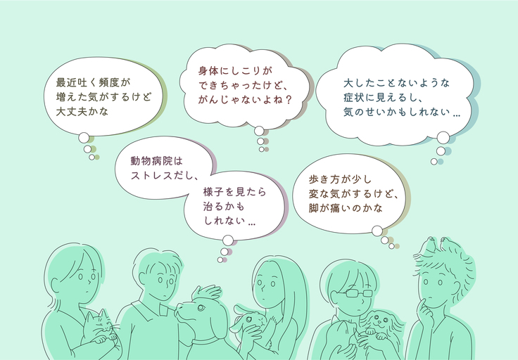 さらに、夜間ではかかりつけの動物病院を受診することができないケースも多く、悩みを持つ飼い主様は不安に苛まれながら、ネットをひたすら検索するしかありませんでした。