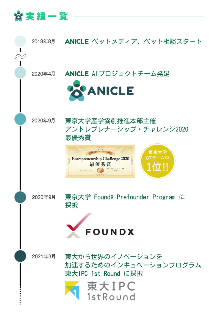 ・東京大学アントレプレナーチャレンジ最優秀賞(学内ビジネスコンテスト)東京大学の学部生・院生チーム計37チームから最優秀賞に選ばれました。(詳細リンク)