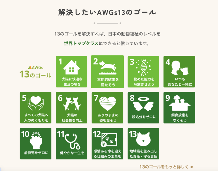 この「AWGs13のゴール」を解決すれば、日本の動物福祉のレベルを世界トップクラスにできるはず!