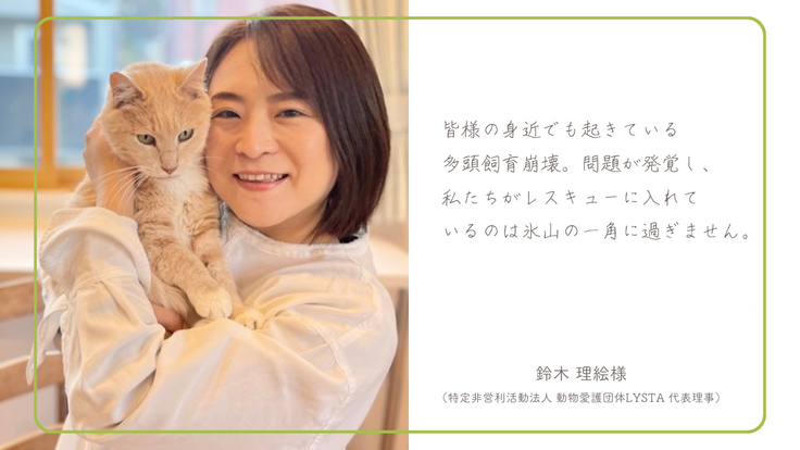 今回のプロジェクトに向けて、特定非営利活動法人 動物愛護団体LYSTA 代表理事の鈴木 理絵様より応援メッセージをいただいております。プロジェクトページ下部にもございますが、改めてご紹介致します!