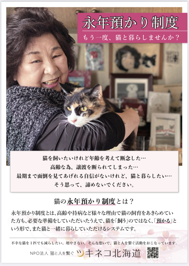 「特定非営利活動法人 猫と人を繋ぐツキネコ北海道」の「猫の永年預かり制度®」のご紹介