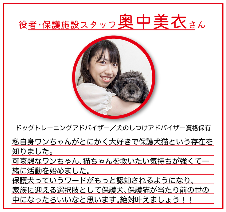 そして“保護犬”や“保護猫”というだけでマイナスなイメージを持たれがちですが、ペットショップにいる子達と何ら変わらない可愛さと私が実際に感じた魅力をこの施設に訪れた皆さんに感じて欲しいと思っています!