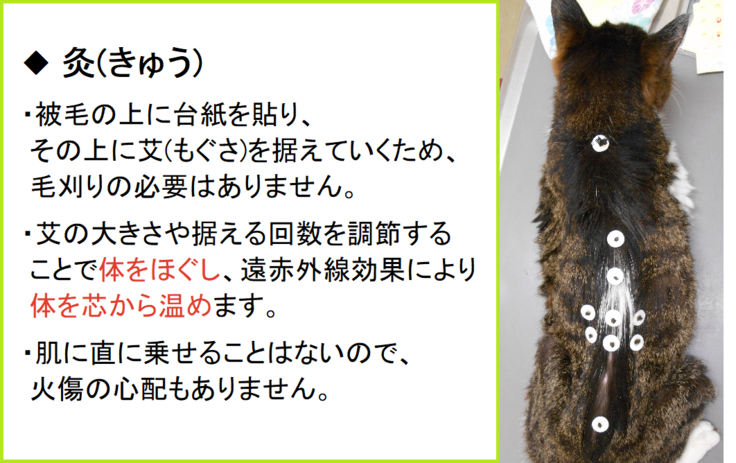 現在は、一般的な西洋医学の治療に合わせて、東洋医学(中国医学)に基づく鍼灸(はりきゅう)治療を中心に、薬膳指導やマッサージを取り入れながら、北海道苫小牧市の動物病院で勤務医として診療を行っています。
