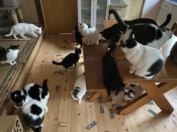 新しく保護した猫と相性が悪かった場合に、猫たちを分けることができず、けんかを防ぐことなどができません。座敷の畳の痛みも目立ち、衛生面での問題も発生してきました。多くの猫たちを幸せにしたいという思いで、工夫を重ねてきましたが、今の状態では限界を感じるようになりました。
