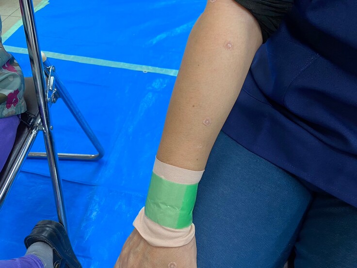 痛みをとるために、手首に湿布を貼り、養生テープで止めて、腕には針を刺しながら手術を続けてくれました。スタッフさんとの素晴らしい連携で多くの猫たちがさくら猫になりました。