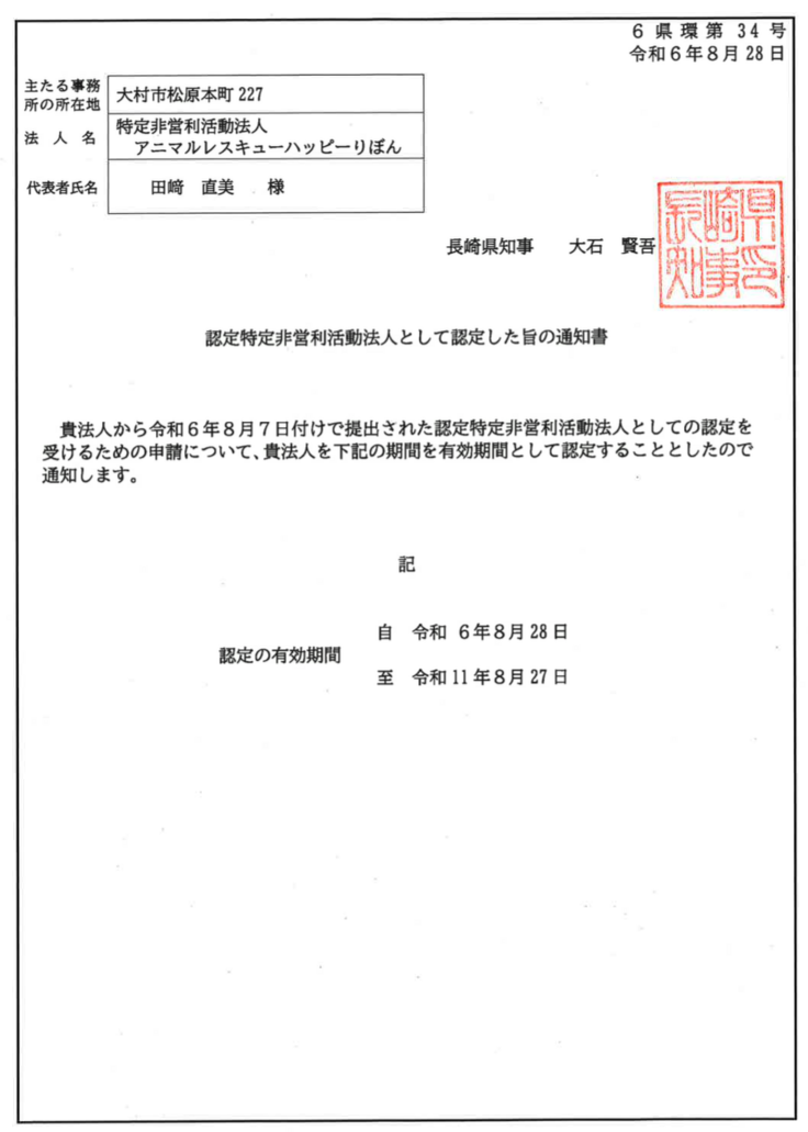 この度、令和6年8月28日に、私たちの団体は長崎県で現在8法人しかない認定NPO法人として認定を受けました。