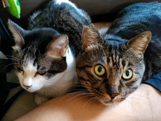 ハッピーりぼんから、まこととくるみをお迎えして1年10ヶ月が経ちました。どちらも成猫の男の子。大柄でコワモテで寡黙な佇まいだけど実は甘えん坊のまこと。クールビューティで女の子みたいなくるみ。