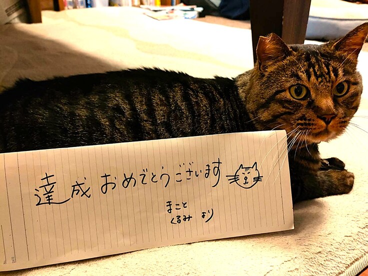 今回も達成し、多くの猫を幸せにできるように頑張ります。