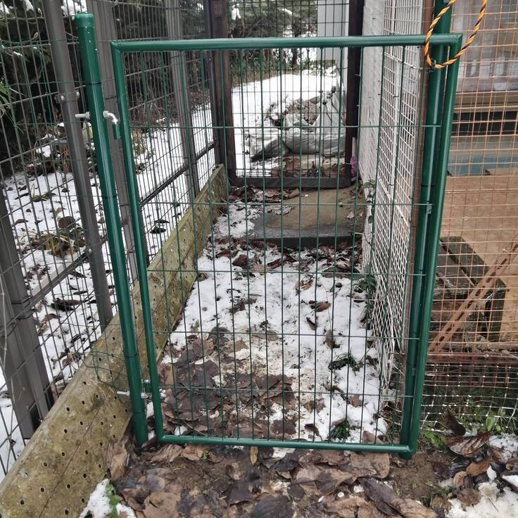フェンス下は掘り潜れないよう内側に板を固定していましたが