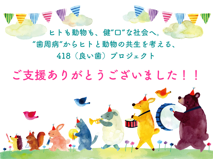 まずは「“歯周病”からヒトと動物の共生を考える、418(良い歯)プロジェクト」終了のご報告と感謝をお伝えします。