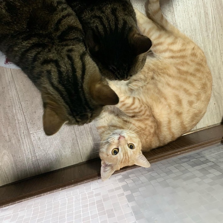 この子たちは、離れのシェルターにいる猫たちです。3匹で1台のケージで生活しています。仲の良い子たちを振り分けたのですが、やはり成猫3匹ですと狭く、適正飼育とは言えないのです。