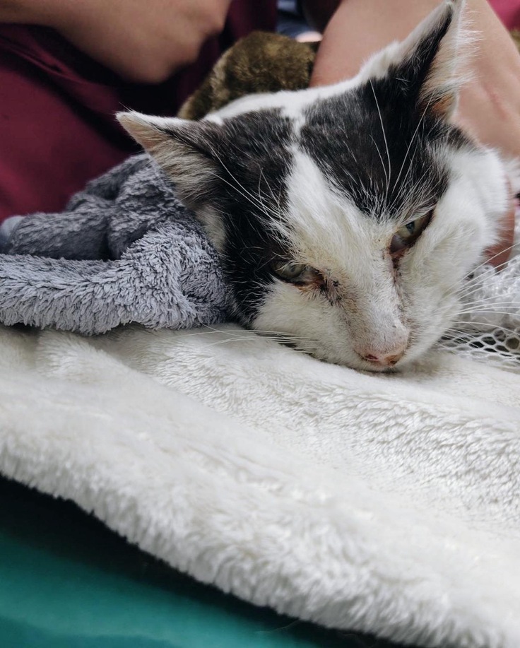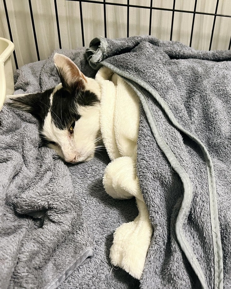 ガリガリで動けなくなってしまった猫ちゃんがいて