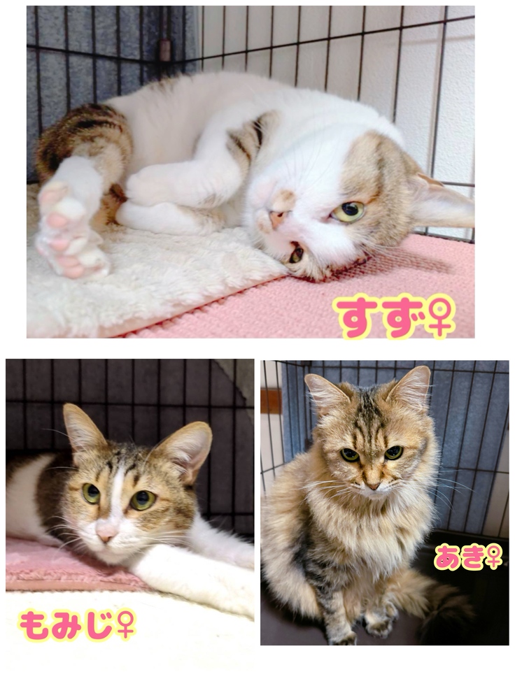 あきともみじは夏から多頭飼育崩壊にて保護してきたリゾ、ナツ、シー、イトと同じお家の子達です。