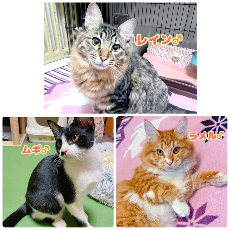 レイン♂6ヶ月 ラメル♂6ヶ月 ムギ♂5ヶ月です☺️