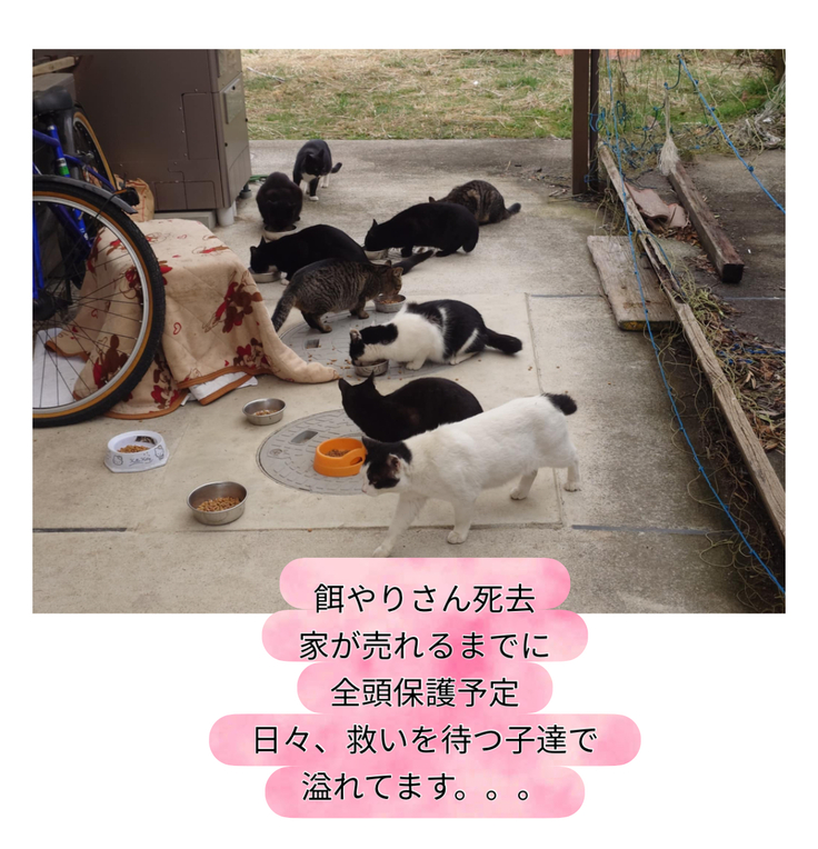 写真はTNRした猫たち、餌やりさん死去のため保護予定の10〜17匹の猫たちです。まだまだ保護を必要とする犬猫で溢れています。
