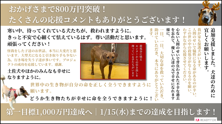 12月5日から開始したアニマルパレスのプロジェクトですが、ついに支援額が800万円を超えました!