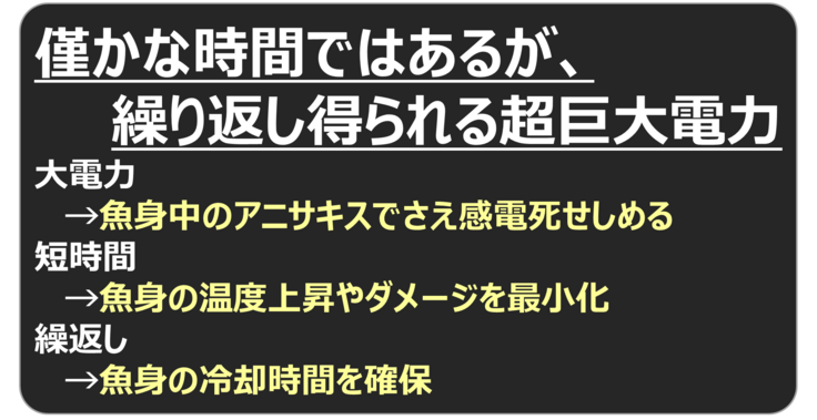 →大きな力が、お刺身に潜んでいる(隠れていて見えない)アニサキスでさえも感電死させる