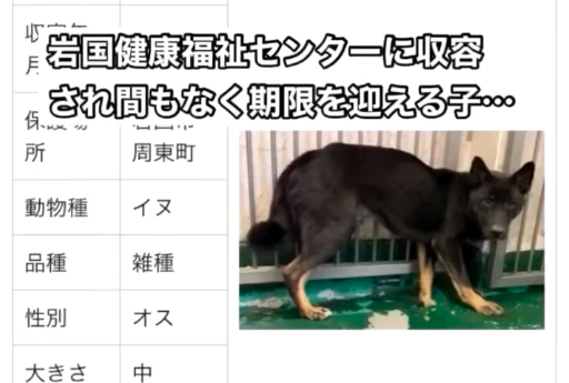 山口県岩国保健所に収容中に22日までの期限が付き、(私たちのクラウドファンディングに応援メッセージもくださっている)ちびたまのしっぽ愛護会さんが必死に発信してくださり、