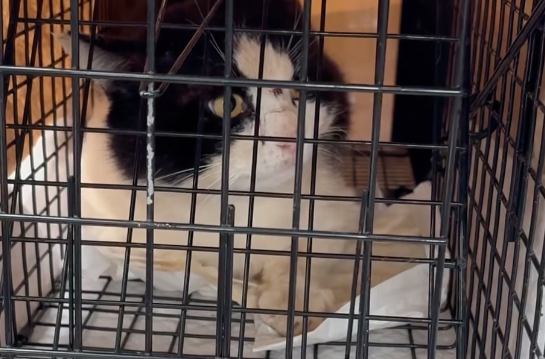 人が近寄っても逃げる様子はありませんでしたが、確実に捕獲するため、捕獲器をお貸しして捕獲実施までのアドバイスなどさせていただきました。警戒せず捕獲器に入るようになるまで捕獲器内で根気良くご飯を与えてくださり、 無事に捕獲することができました。