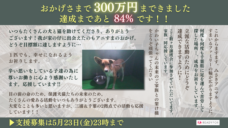300万円まで来ました!ご支援には皆さまの想いが詰まっています