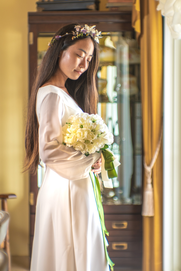 一般的な結婚式専門の牧師ではなく、実際に教会で礼拝を行なっている牧師様立会いのもとに行われるプロテスタント式のシンプルで厳かな挙式です。