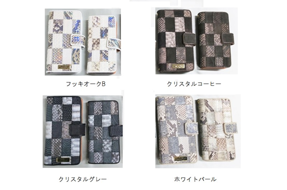●蛇革とトカゲ革の汎用版手帳型スマートフォンケース