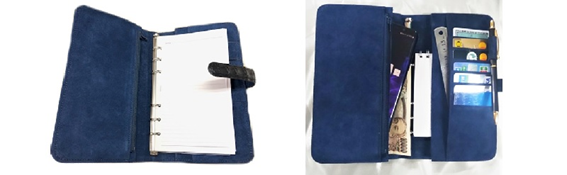サイズは(約)20x12x2cm中身は市販のものをご使用出来ます。ポケット:オープン式x4、ファスナー式x1カード段:7枚用紙:40枚