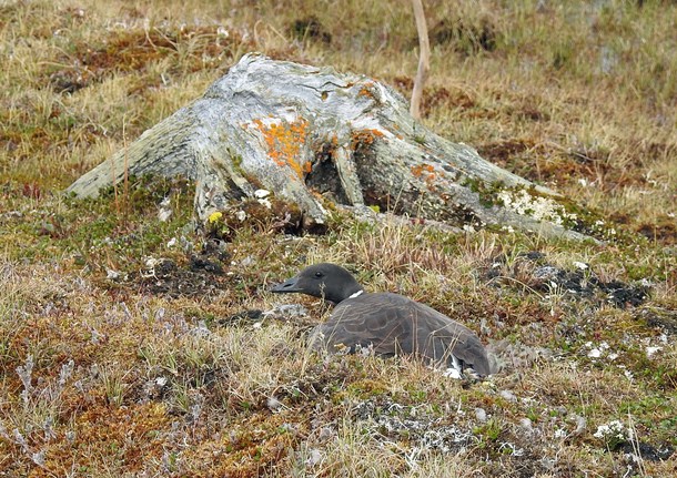 6月14日から7月18日にかけて、コクガンならびにシギ・チドリ類の標識調査のためロシアのサハ共和国に滞在し、無事調査を終えて帰国しました。現地へ向かうヘリコプターのチャーター代金が集まらなかったため、機材や食料を満載した2台のモーターボートで、漸く解け始めた北極海の氷にぶつからないように注意しながら、300Km程の水路を慎重に移動して目的地に到達しました。北極海の氷が完全に解けたのは7月の中旬で、北緯70°を越える極北のツンドラの環境の厳しさを痛感しました。年によっては氷が解けるのが遅かったり吹雪などで、調査地まで移動ができないこともあるそうです。ヤクーツクの凍土研究所鳥類学室・レナデルタ国家級保護区の皆様には大変お世話になりました(写真は抱卵中のコクガン)。