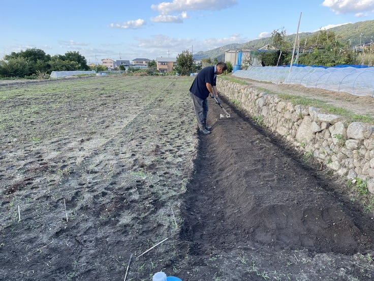 現在自営業をしながら、大阪府柏原市の山間部で耕作放棄地を畑に戻す運動をしながら、現在農協のマッチングで900㎡の畑を借りてグループで作物を栽培しています。