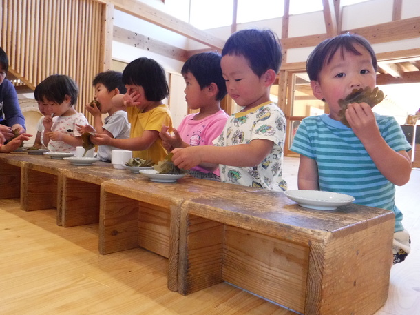 端午の節句も迎え、みんなで作ったかしわ餅をおいしそうに食べていました♪