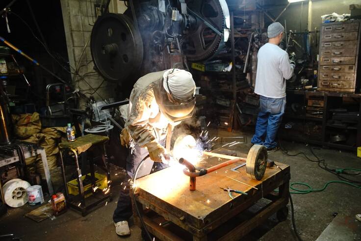 青砥酸素工業所では、溶接やプレスを専門にした金属加工を日々行っていました。