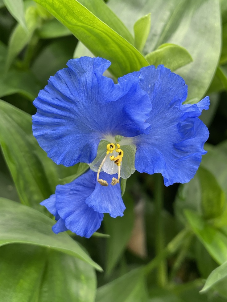 なんとか草津市役所にたどり着き、咲き誇るアオバナの植栽に感動しながら描いていると総務課の方に「今が見頃ですよ✨」とお声掛けいただき、アオバナが一つの房から1つだけではなく、2つや3つ咲くこともあると教えていただきました