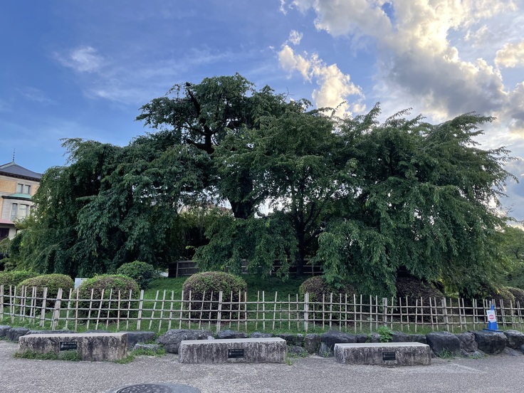 ライブの前に葉が生い茂る元気な夏の祇園枝垂桜にご挨拶してきました。