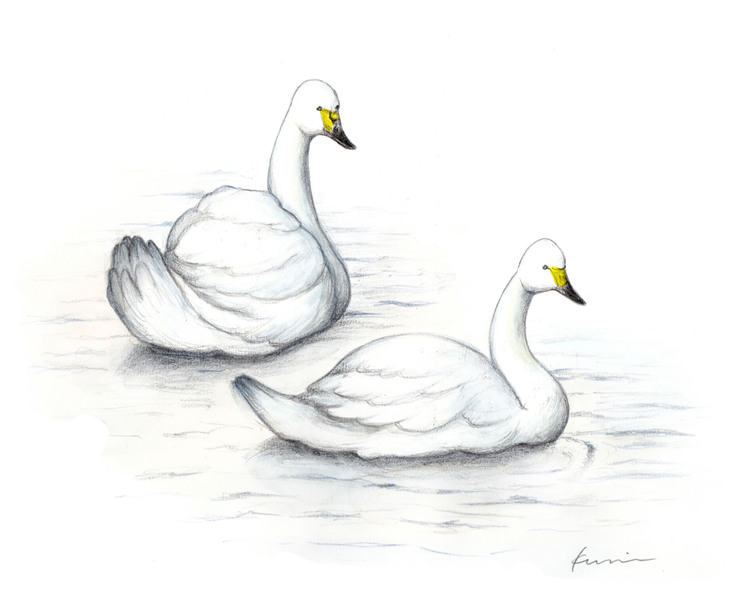 🌸イラストレーション 草津水鳥観測所に訪れたコハクチョウの服部くんと玉ちゃん by.Kuni🌸