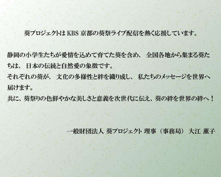 葵祭応援の旨または思い出エピソードなどのご紹介も可能(100文字程度)