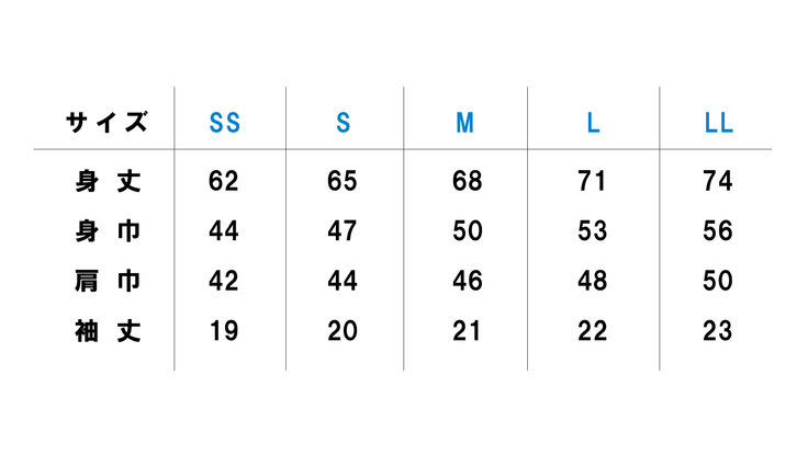 サイズ表(SS・S・M・L・LL)
