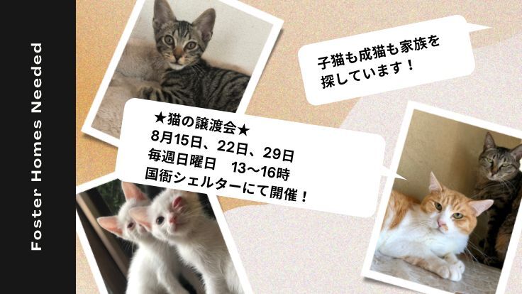 8月8日(日)、国衙(こくが)シェルターにて猫の譲渡会が開催されました。