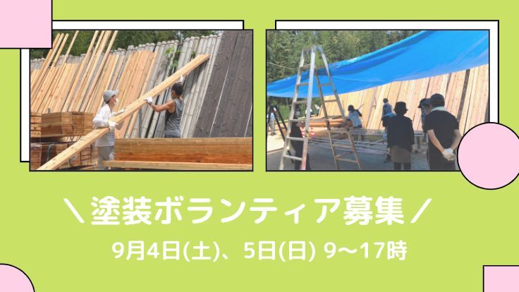 7月に塗料を塗った木材に再び塗料を塗る作業を9月4日、5日の2日間でおこないます。恐縮ではございますがご協力いただければ幸いです。