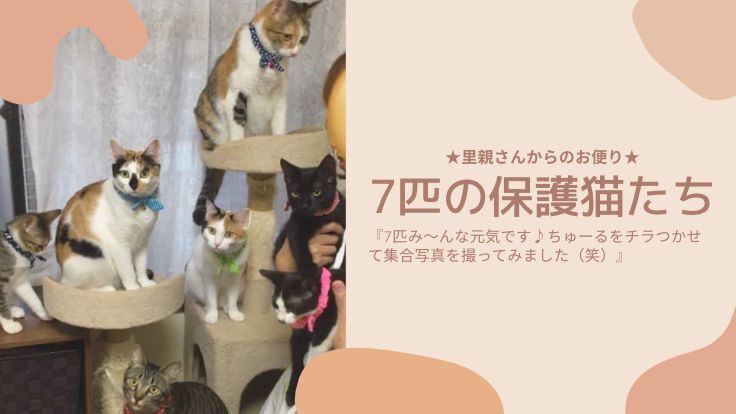 「7匹み〜んな元気です!ちゅーるをチラつかせて集合写真を撮ってみました(笑)」