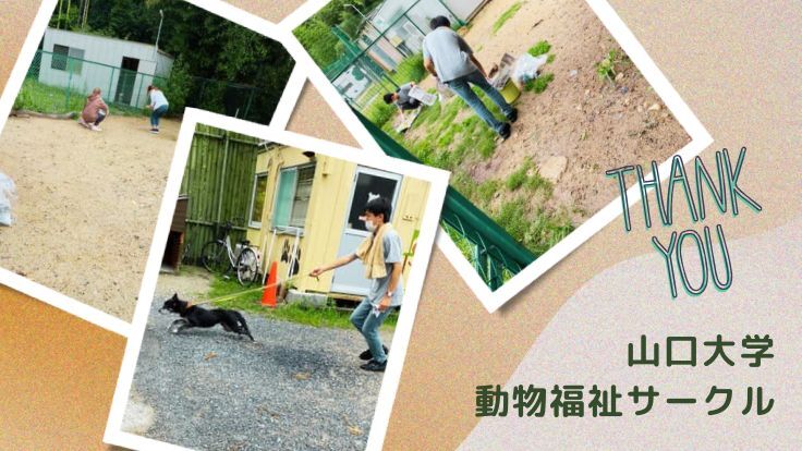 山口大学の学生さんが動物福祉サークルを立ち上げたそうです!先日は4名の学生さんが和字シェルターに来てくださいました。暑い中、ドッグランの清掃やお散歩などテキパキこなす学生さんたち。若さあふれるエネルギーに助けられた1日でした♪ありがとうございました。