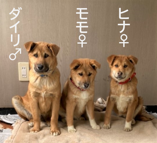 3月3日に3兄妹。サン・サン・サンの嬉しいつながりで、ひな祭りにちなんで「ダイリ」「ヒナ」「モモ」と名づけました。