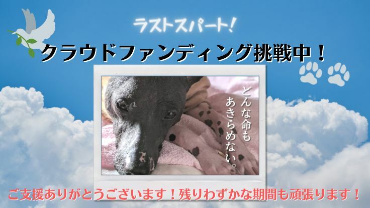 現在挑戦中のクラウドファンディング、殺処分ゼロを守り抜くために。今を乗り越えるためのご支援を。が残り13日で終了します。