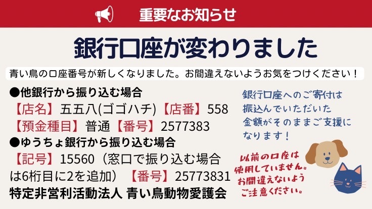 以前の口座は使用していませんので、お間違えないようお願いいたします。