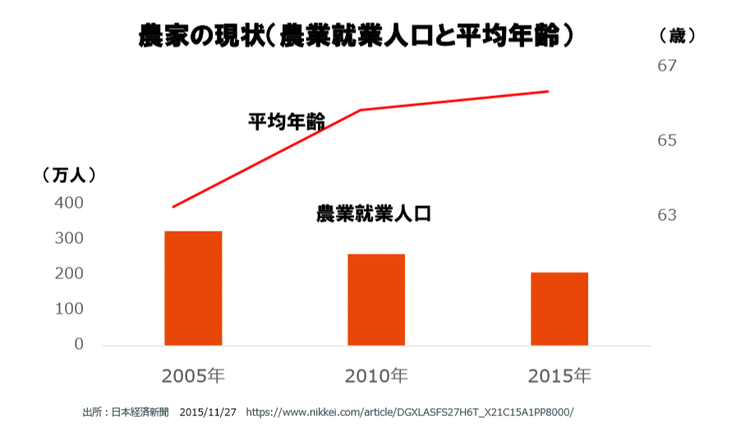 しかし、下記のように、全国的に農業人口が減少し、高齢化で離農が進む中、