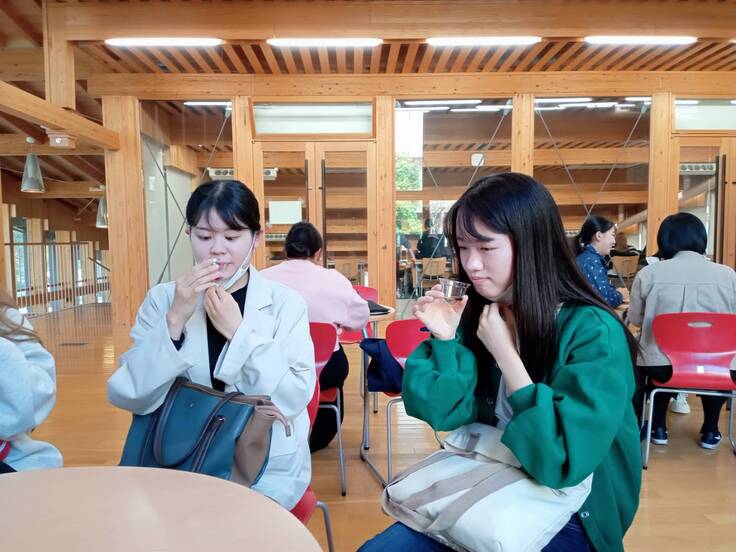 商品化に向けて学生も容器の選定、試作品の試飲・試食をさせていただくなど、様々な面で開発に関わらせていただいており、完成した青みかんポン酢は有田市の企業や地域、学生で作り上げたこれまでにない新しいものとなることでしょう。