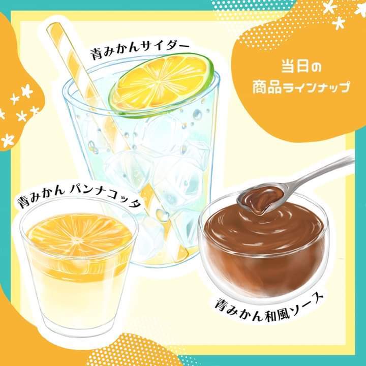 このイベントでは、青みかんサイダー、青みかんパンナコッタ、