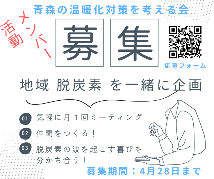 青森の温暖化対策を考える会では、ただいま地域脱炭素をすすめるための活動メンバーを、青森・全国から募集しております。