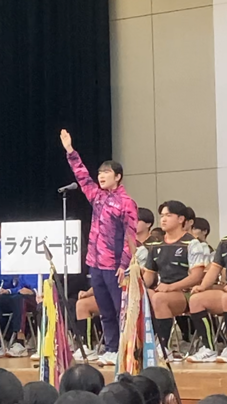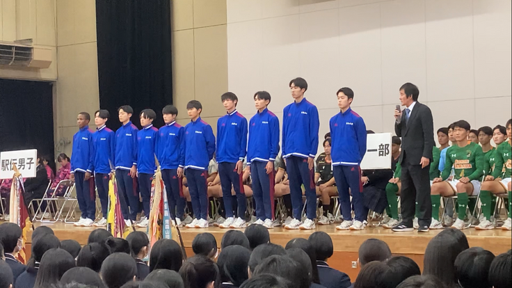 12月12日全国大会に出場する部活動(陸上・サッカー・ラグビー)の壮行式が行われました。