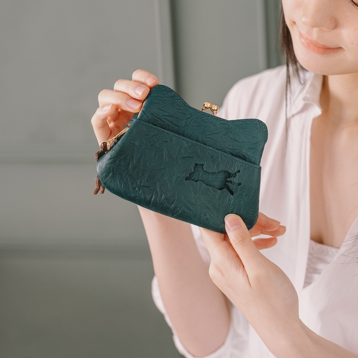 aonecoオリジナルの絞り革を使った、がま口のお財布です。