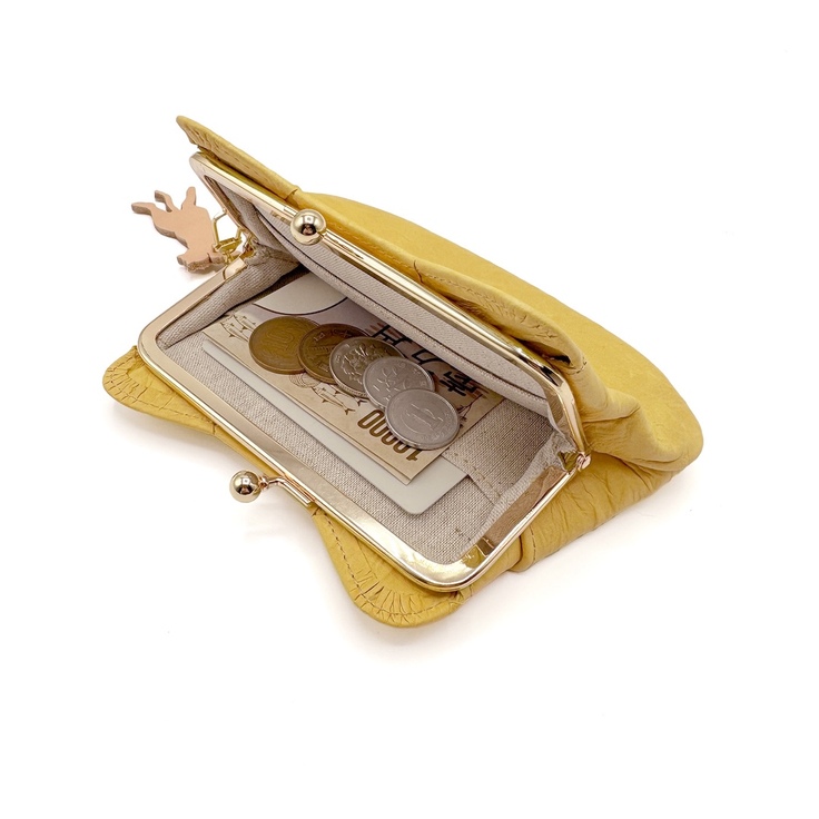 お札が二つ折りで収納可能なサイズ感で、昔ながらの がま口タイプ。内側は綿麻の生地、メインの収納口の他に両側ポケットが1つずつあるのでカード類や小銭も分けて収納できて、小さめお財布としてコンパクトにまとめられます。 リップなどの小物入れとして使っているという、ユーザーの声も多いです。